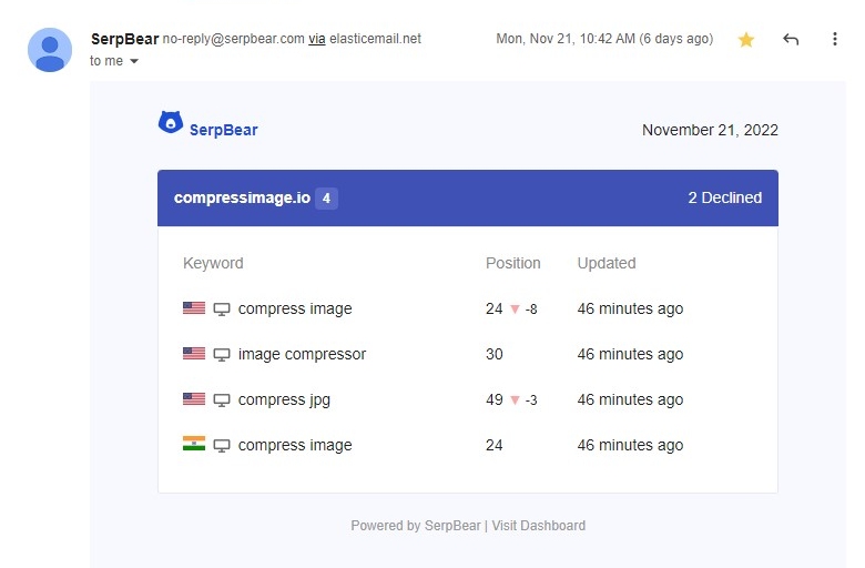 Step 7: Receiving Daily/Weekly Email Notification of your Keyword's Position changes